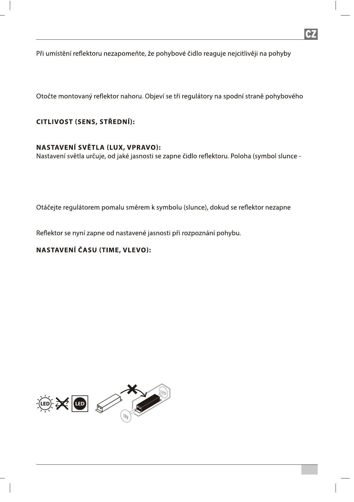 čidlo TIME na minimální čas (10 s). Otočte regulátor nastavení světla na symbol (měsíc).