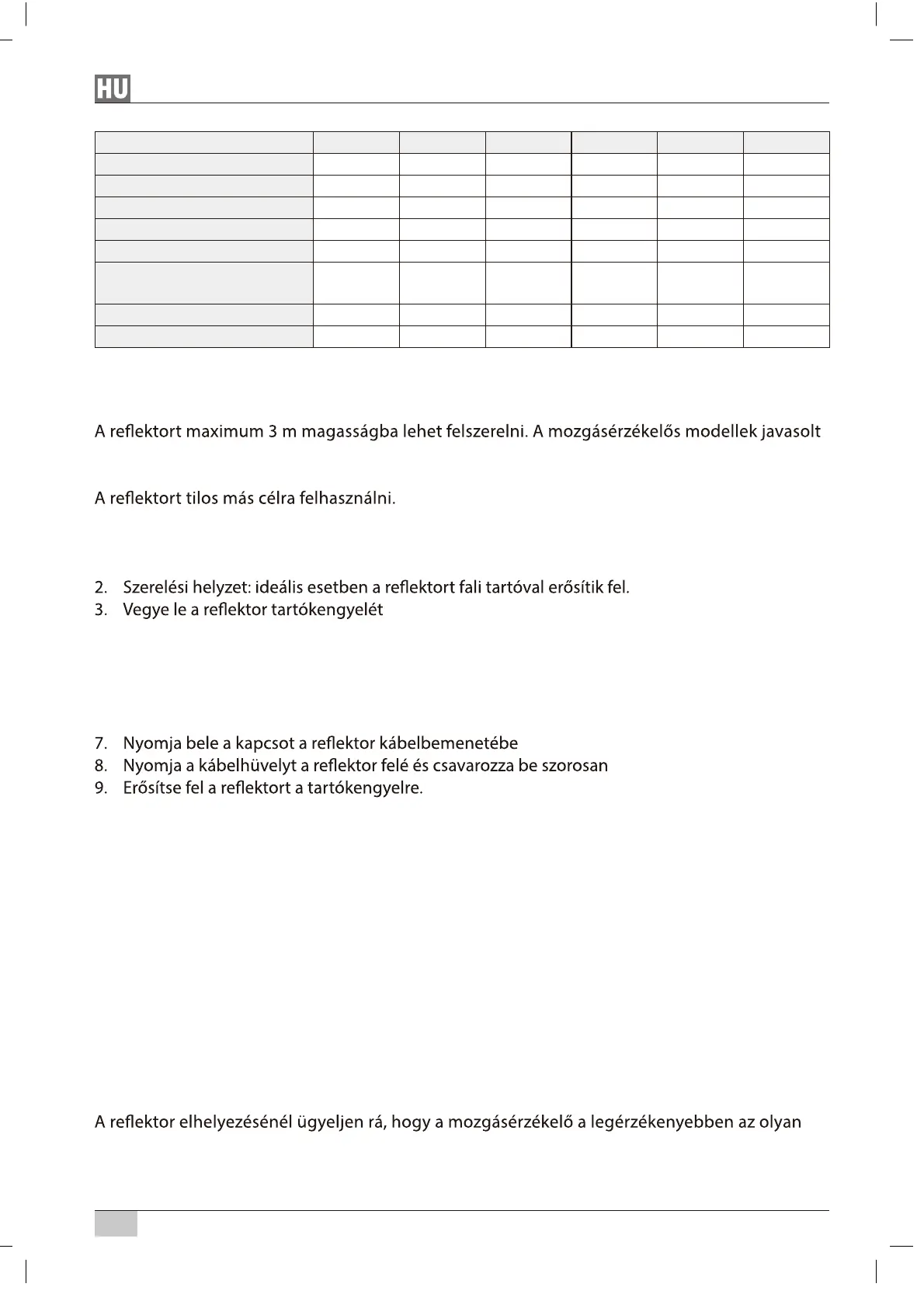 vannak kitéve. A mozgásérzékelőt ne irányozza fákra vagy bokrokra, illetve olyan helyekre, ahol