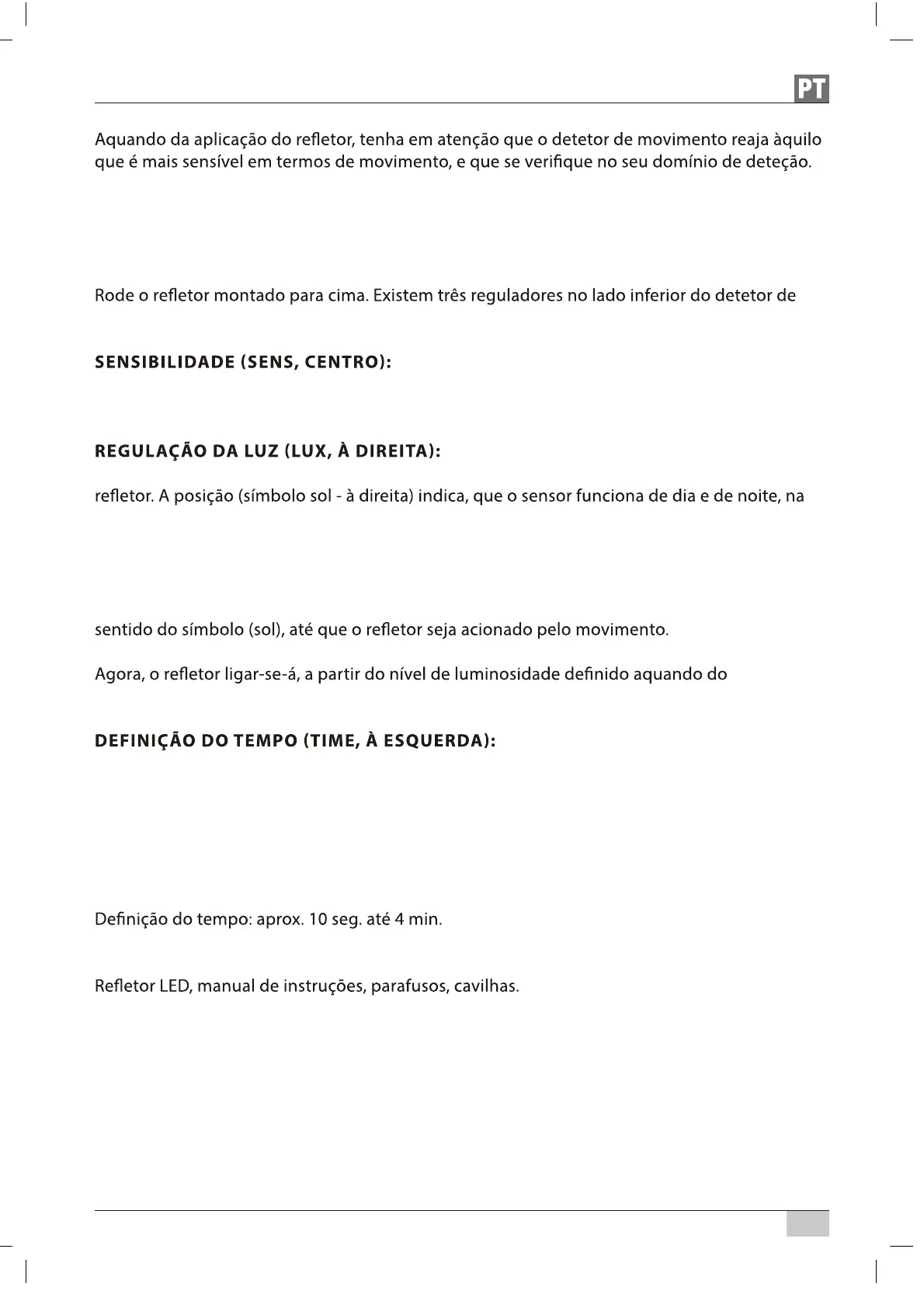 pretendido. Programe o sensor de tempo TIME para o tempo mínimo (10 seg.). Rode, por