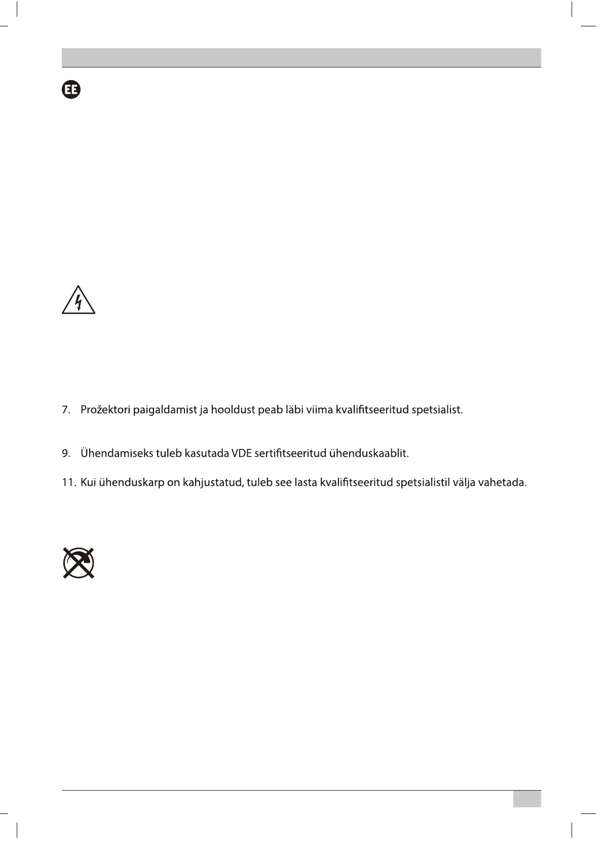 8. Elektriseadmete paigaldamist tohib teostada ainult lähtuvalt ohutusnõuetest (Saksamaa