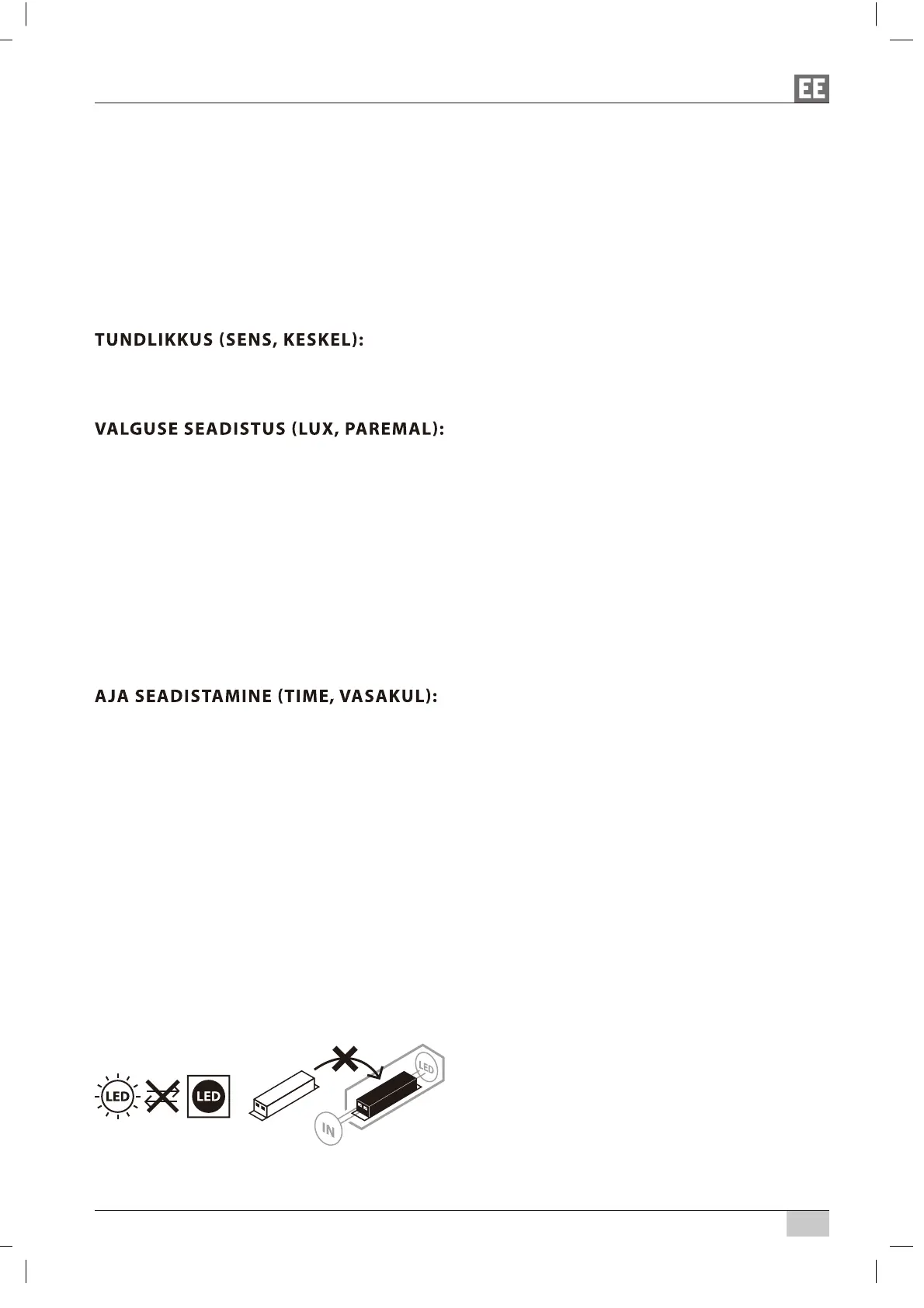 Seadistamiseks oodake, kuni ümbrus on soovitud heledusega. Seadistage aja andur TIME