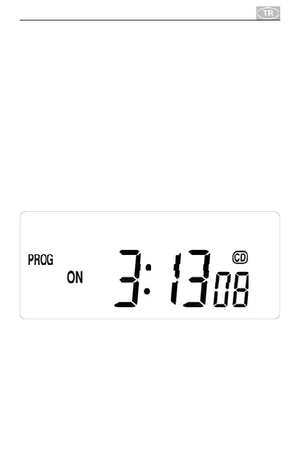 ON ve CD söner ve saat alanı yanmaya başlar.