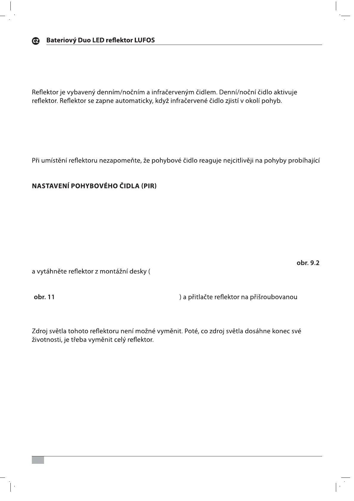 U pohybového čidla je možné nastavit dobu zapínání (obr. 7). Otočte ktomu hlavu pohybového