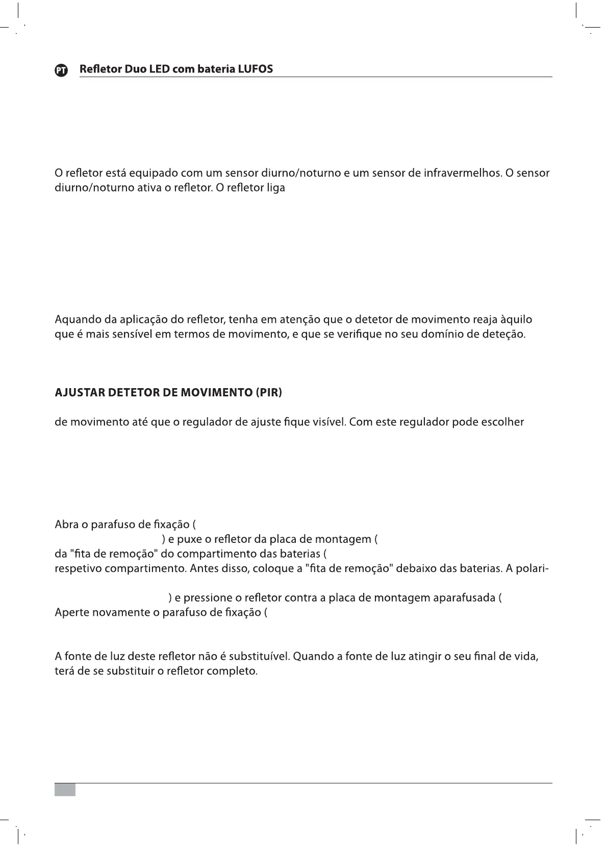 Substituir as pilhas quando a lâmpada começar a piscar.