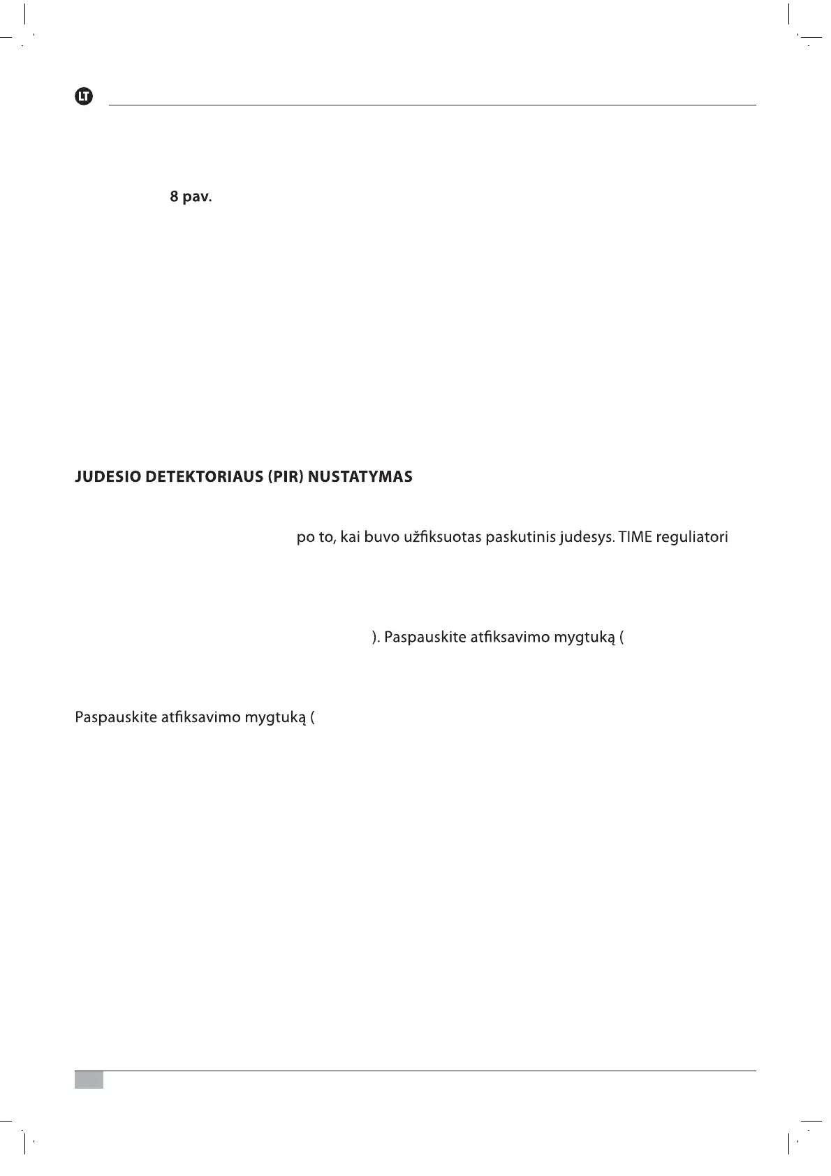 Įjungimo trukmę galima nustatyti prie judesio detektoriaus (7 pav.). Sukite judesio detektoriaus