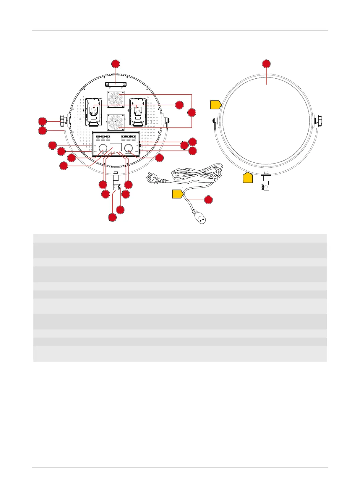Afb.1: Alle onderdelen van de LED lamp, model BR-S-200 Pro