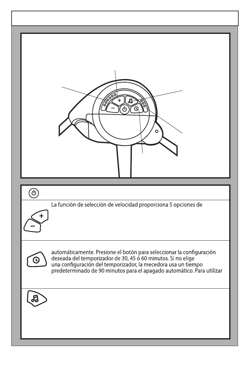 velocidad. Para iniciar la función de mecedora, presione el botón hasta
