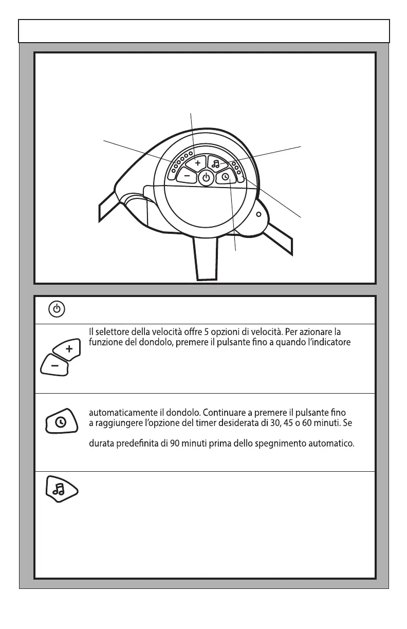 Fare scorrere l’interruttore per accendere il seggiolino a dondolo.