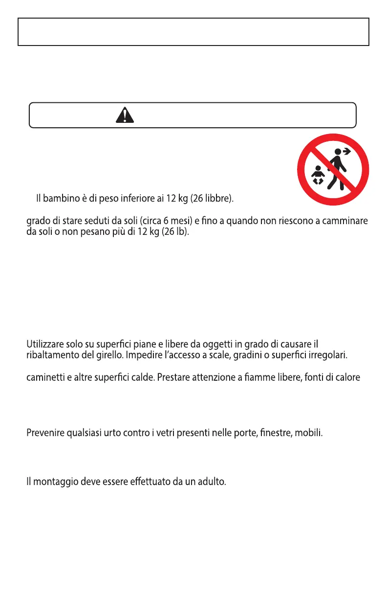 • Il girello deve essere utilizzato solo se il bambino soddisfa TUTTE