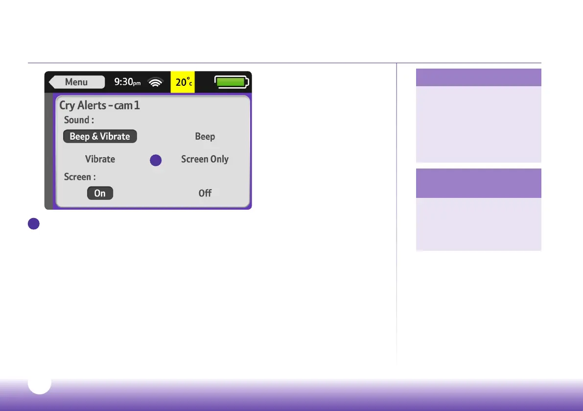 baby settles, a cry alert will