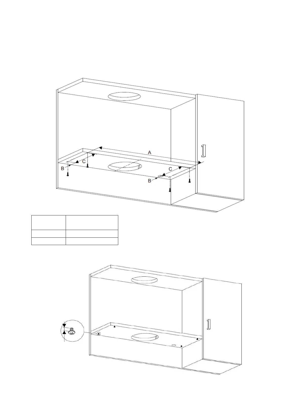 2. Installing 4 pcs ST 3/16” x 11/16” screws (large flat head self tapping) into the cabinet