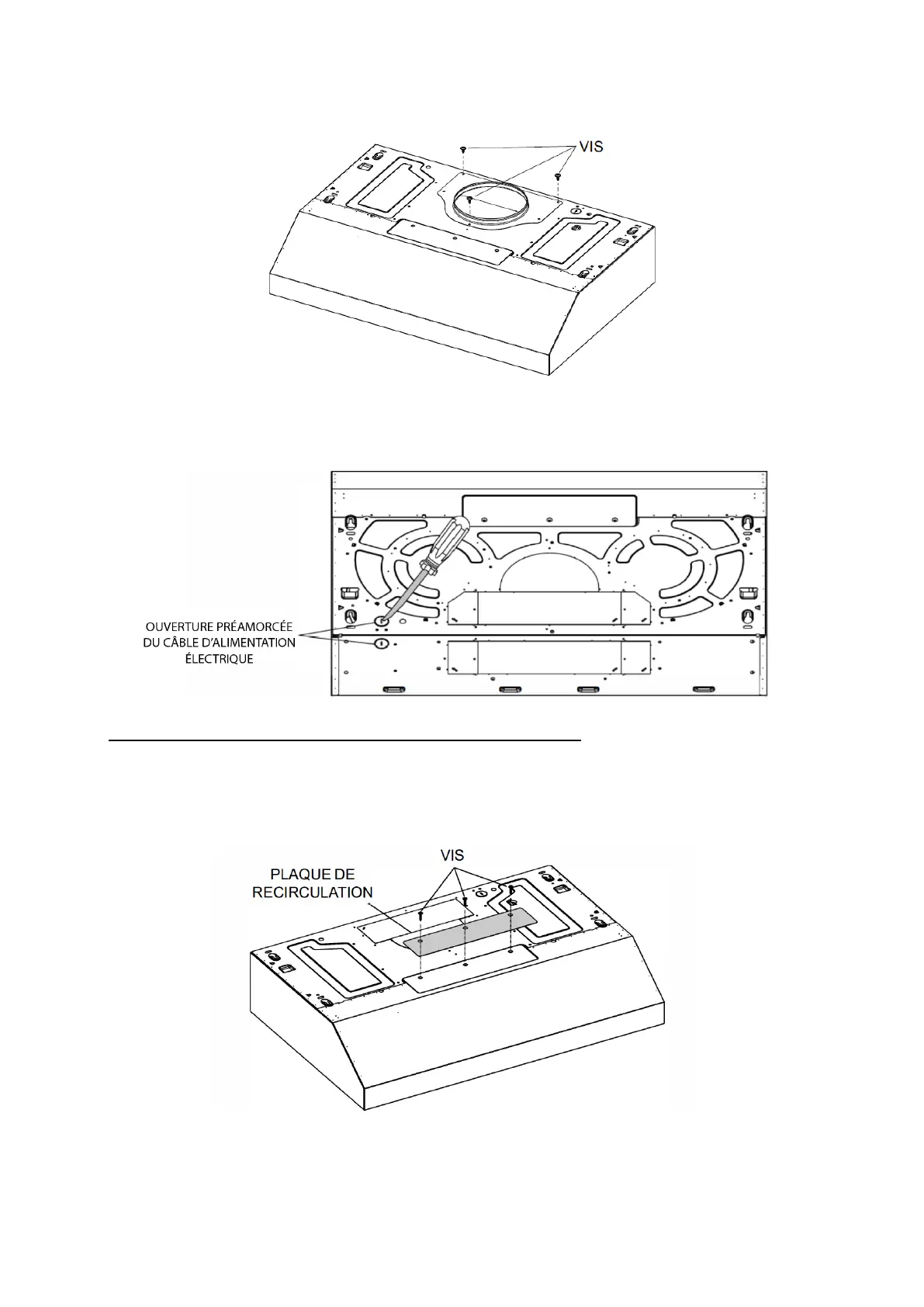l’illustration ci-dessous) à la hotte. Se défaire de cette plaque et de ses vis. Soulever et