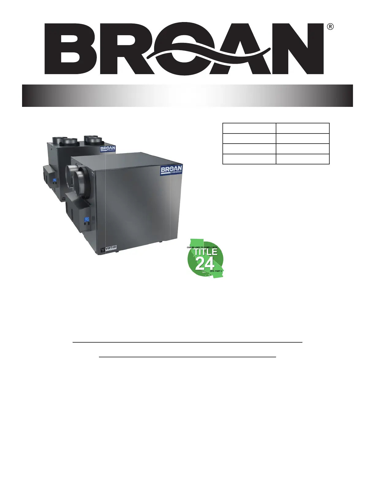 Broan-NuTone LLC, 926 West State Street, Hartford, Wisconsin, USA 53027 Broan-NuTone.com 800-558-1711