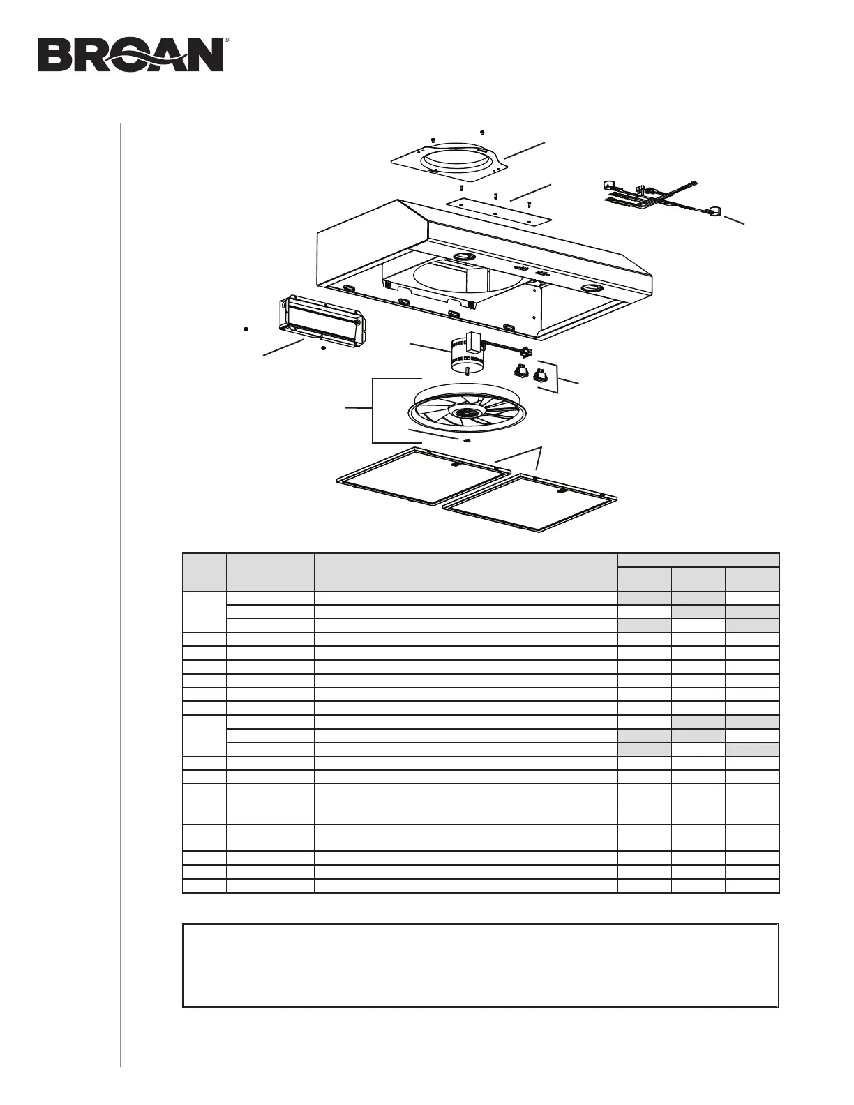 Broan-NuTone LLC genuine replacement parts are specially designed for each unit and are manufactured to comply with all the applicable