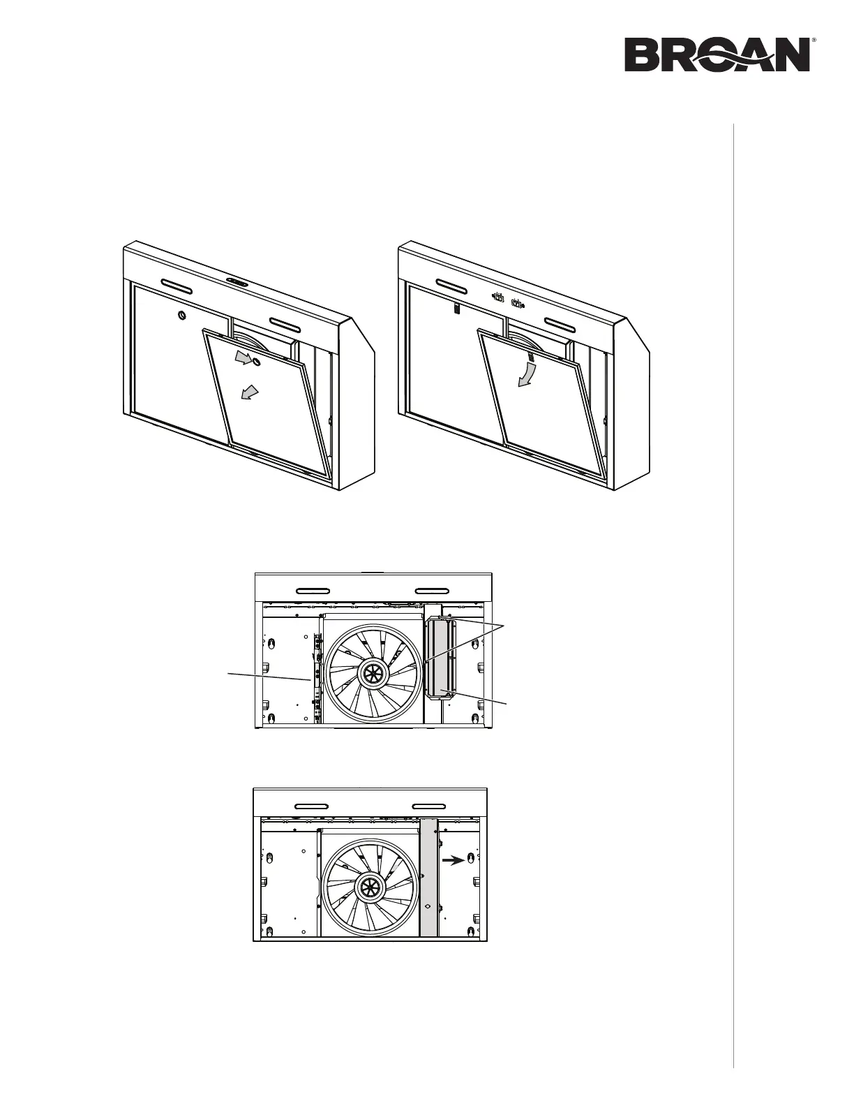 Retirer les deux vis retenant l’adaptateur/volet à la hotte. Retirer l’adaptateur/volet de