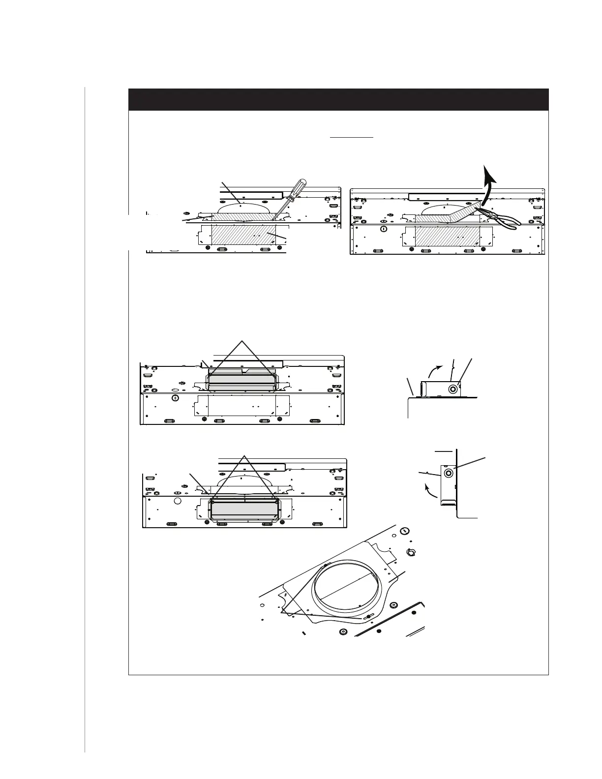 9 ] Installer l’adaptateur/volet de 3¼ po x 10 po sur le dessus OU à l’arrière de la hotte (en gris