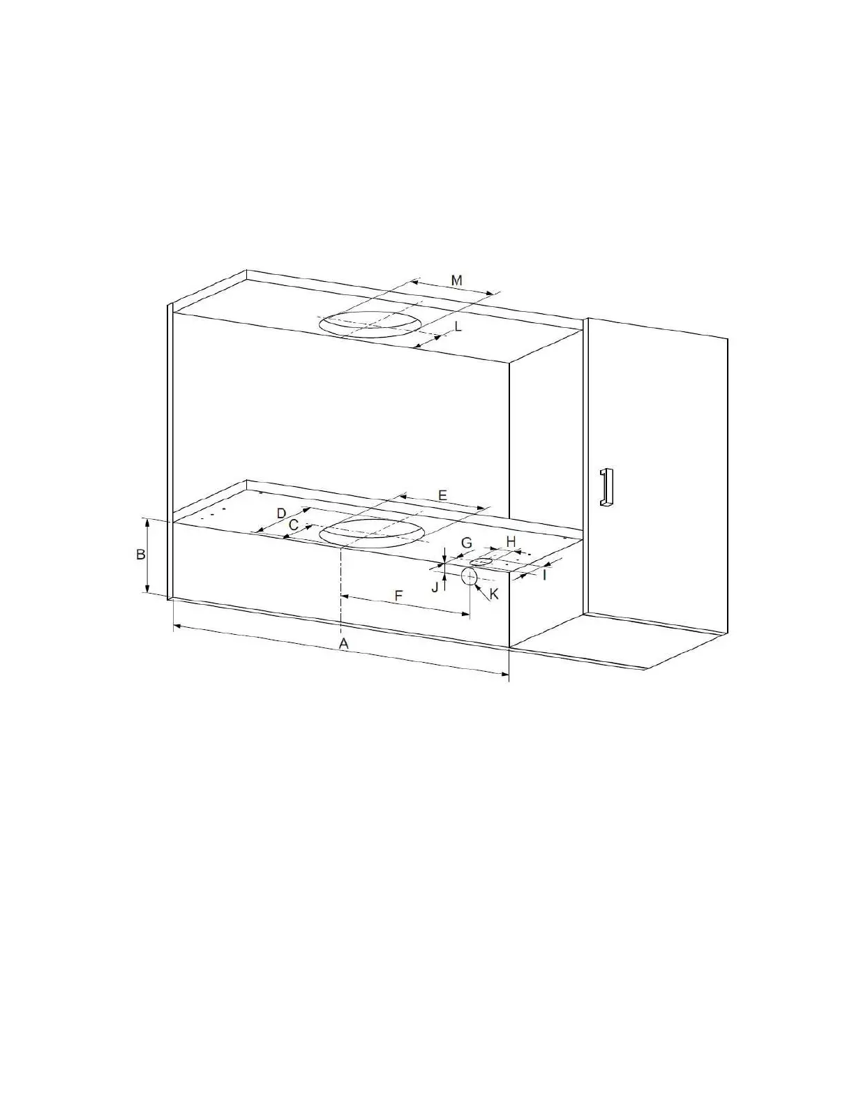 Cut the ducting holes and the hole for the wire to go through inside the cabinet,