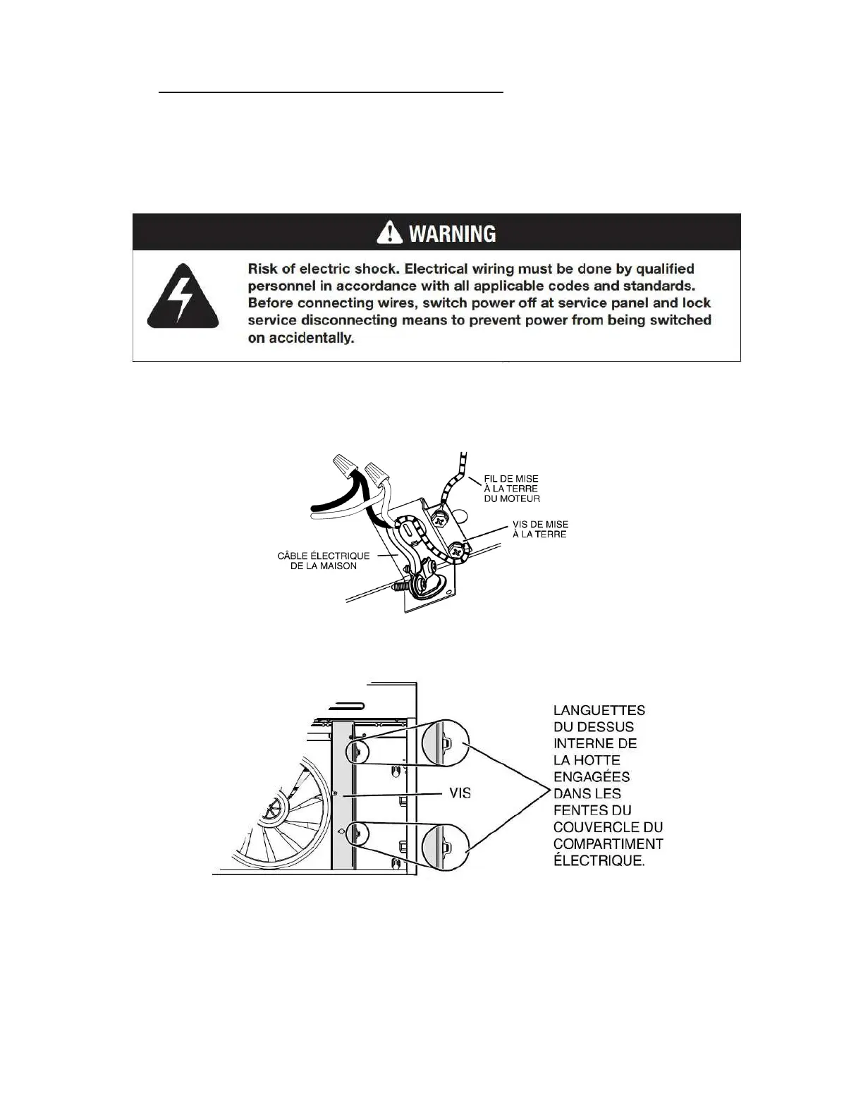 1. Connecter le câble électrique de la maison avec les fils de la hotte : le fil NOIR au