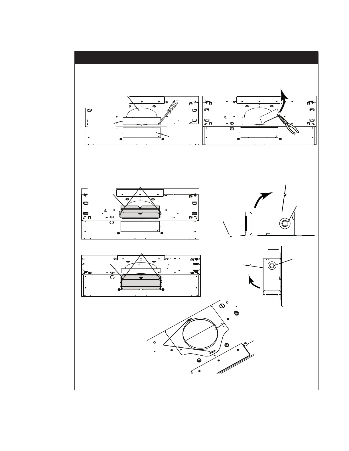 8 ] Remove 3¼” x 10” vertical, 3¼” x 10” horizontal, or 7-inch round knockout plate as