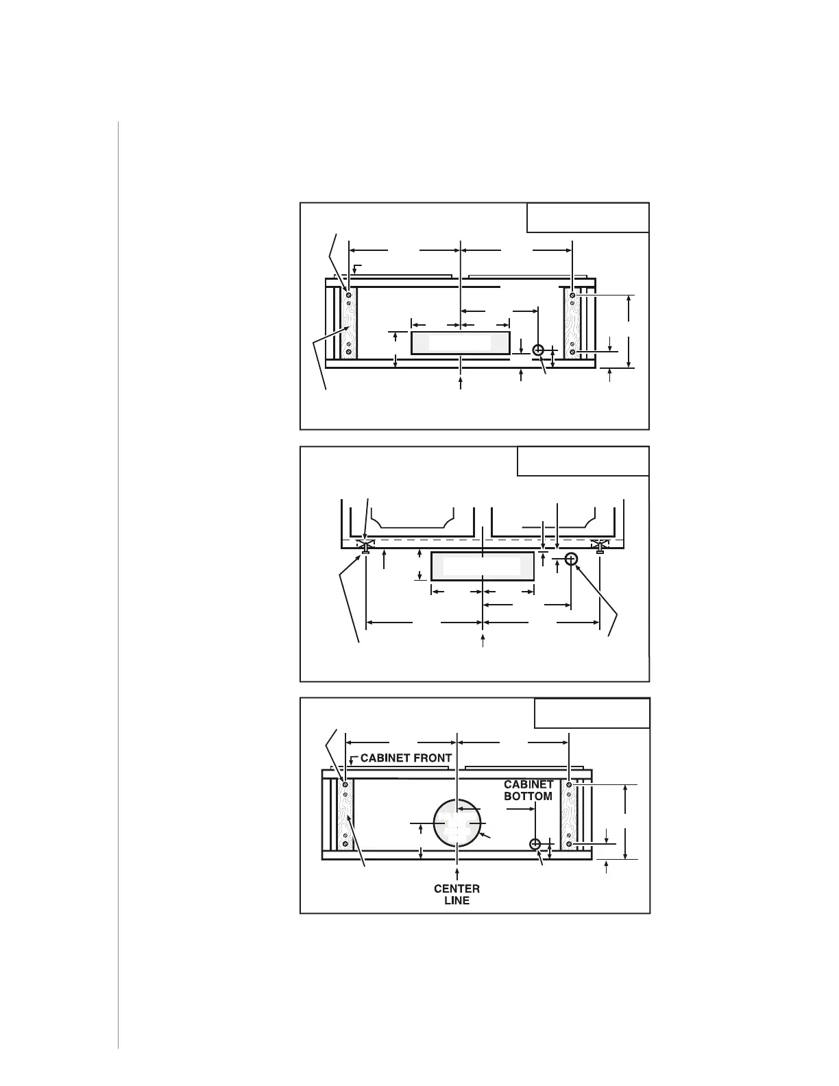 1 ] Use the proper diagram below for placement of ductwork and electrical cutout in cabinet