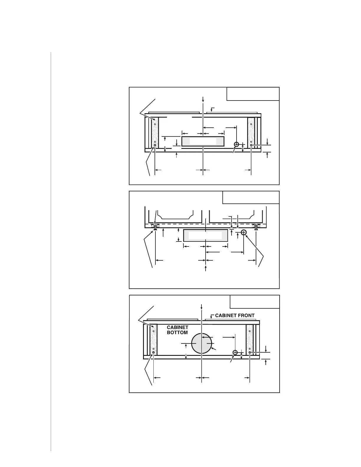 1 ] Use the proper diagram below for placement of ductwork and electrical cutout in cabinet