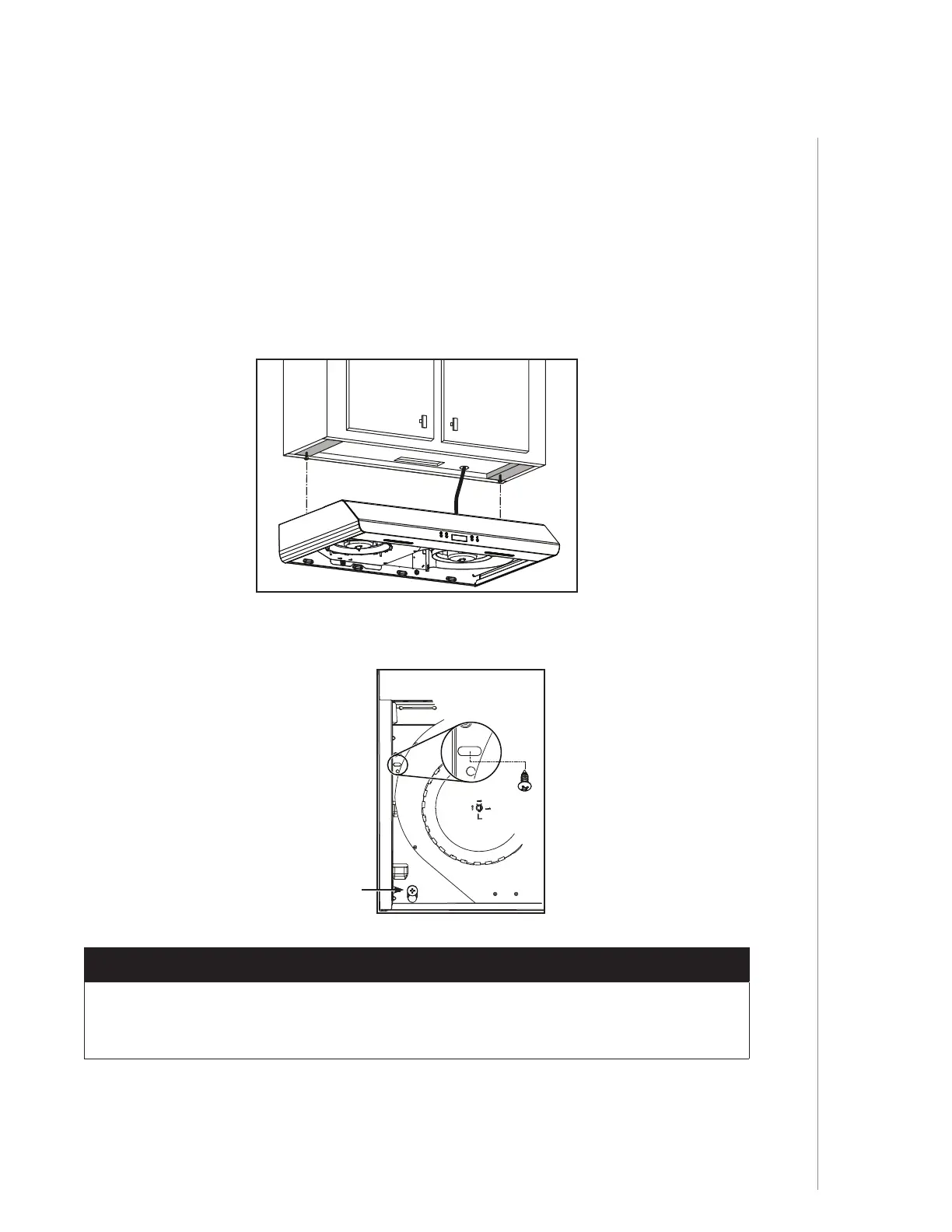 3 ] Secure the hood to the cabinet using two (2) no. 8 x 5/8” round head wood screws (included
