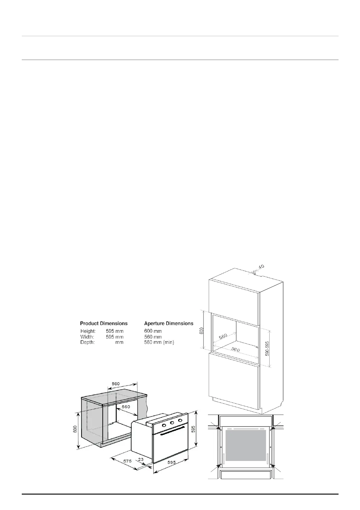 Make an opening with the dimensions given in the diagram for the oven to be fitted.