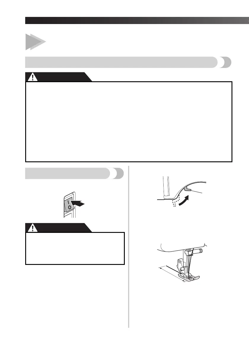 ● To avoid being injured, watch the needle carefully while you are using the machine. Keep