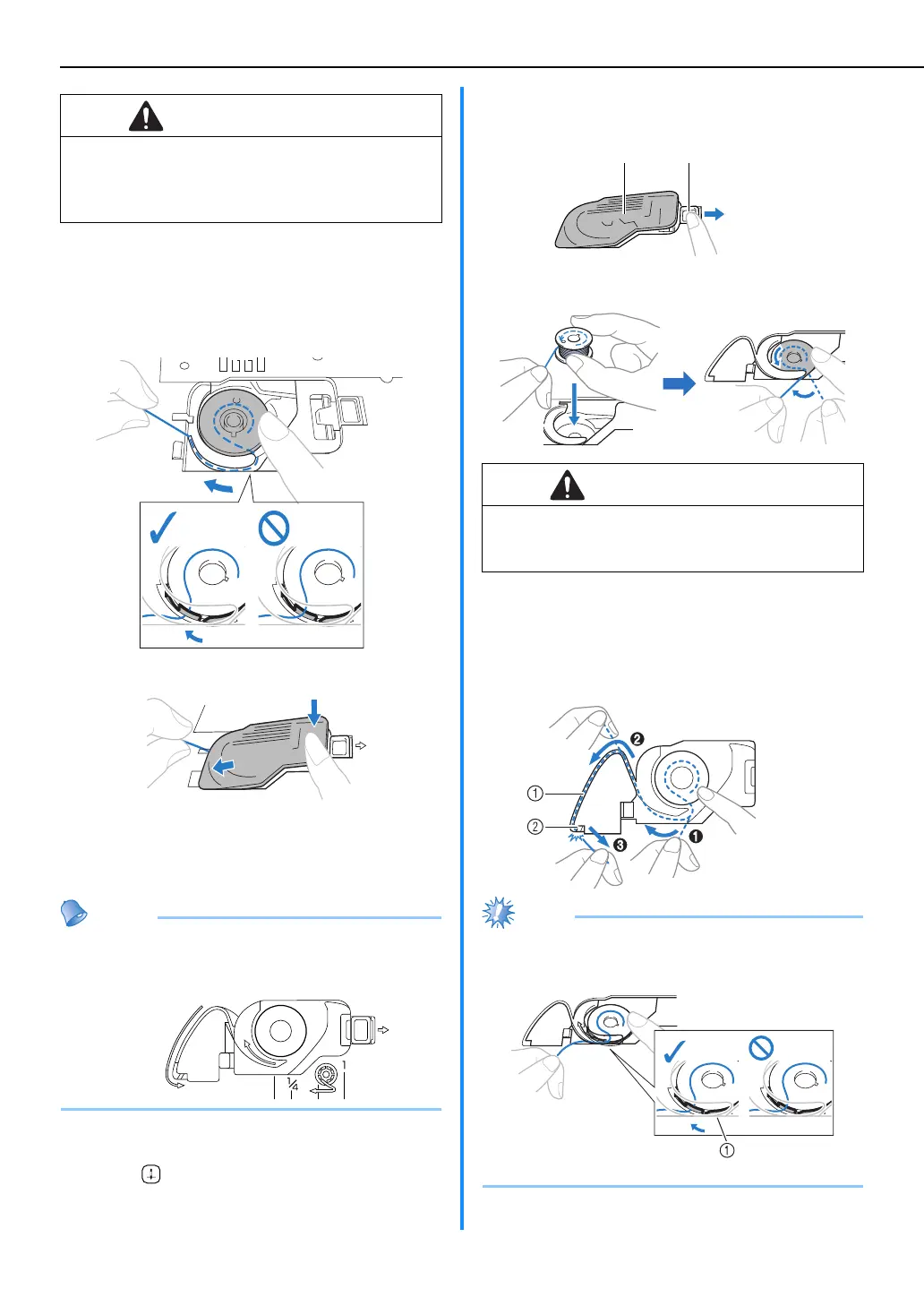 ● The direction for feeding the bobbin thread is