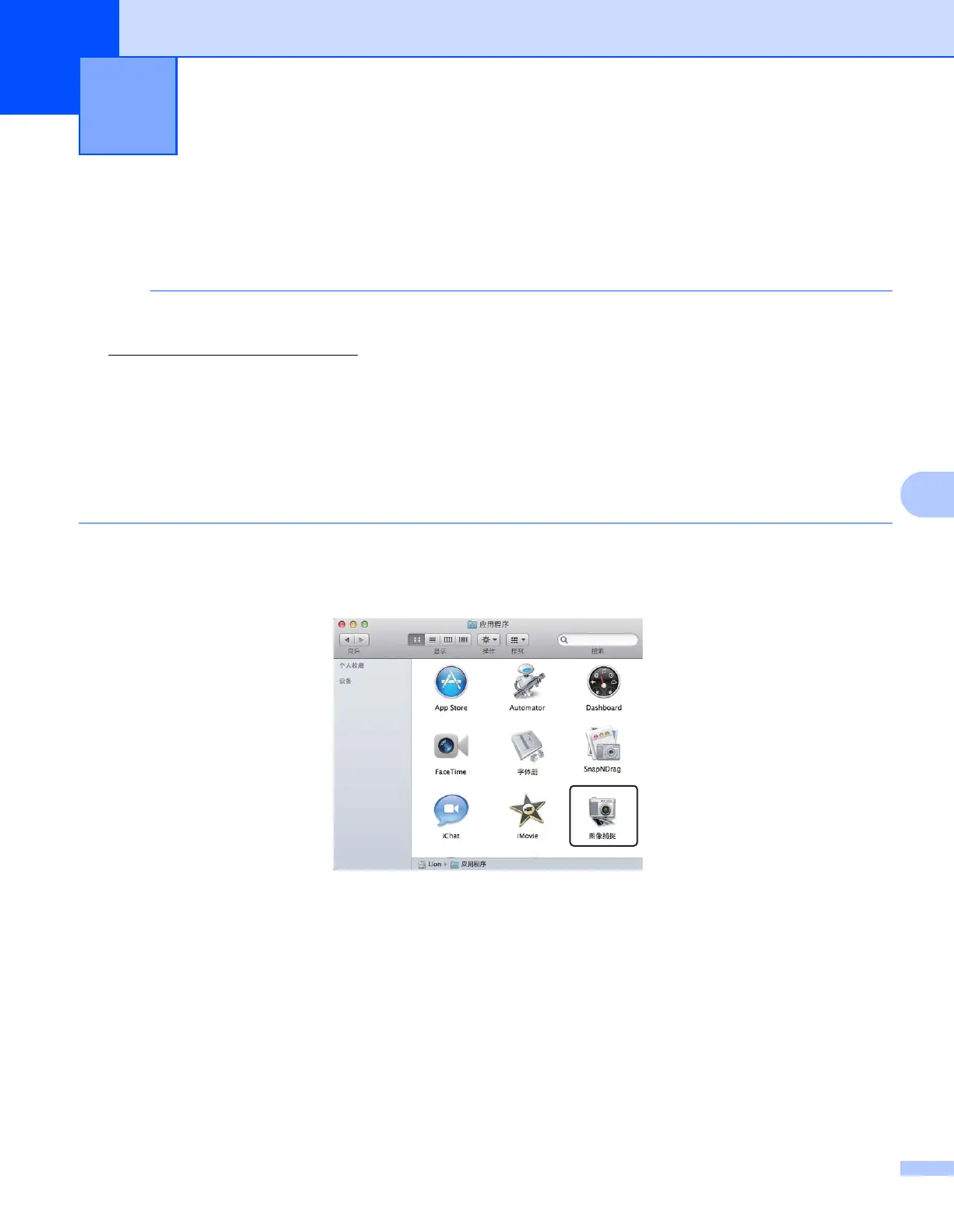 • 本部分的屏幕显示基于 OS X v10.7.x 操作系统。 不同的操作系统版本,Macintosh 的屏幕