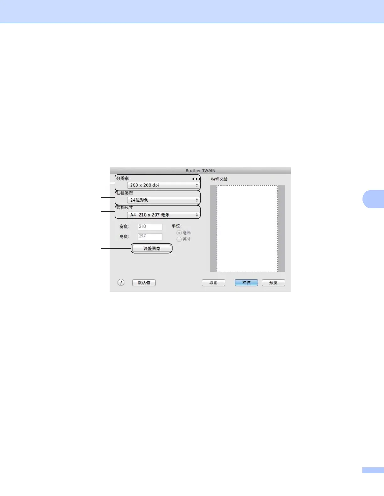 c 必要时,在扫描仪设置对话框中调整以下设置: