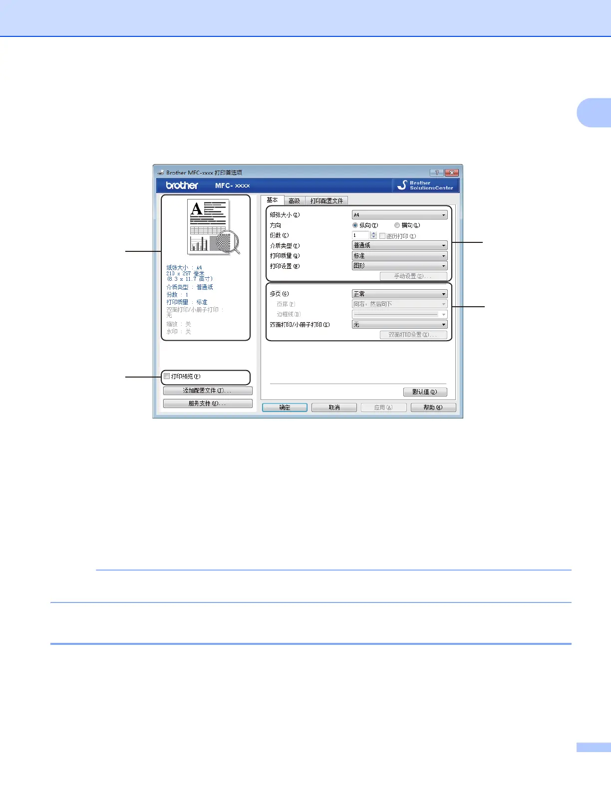 a 选择纸张大小方向份数介质类型打印质量打印设置 (1)