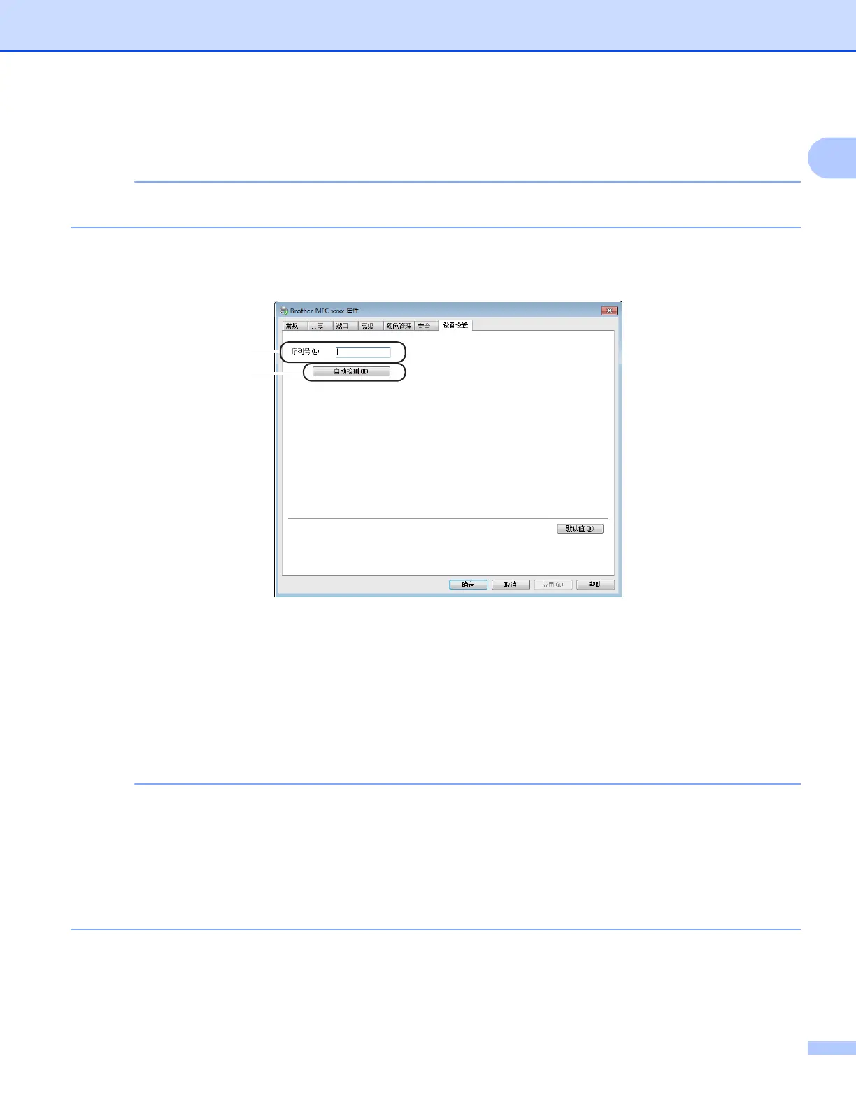 点击自动检测 (2),打印机驱动程序将搜索设备并显示其序列号。如果无法接收信息,屏