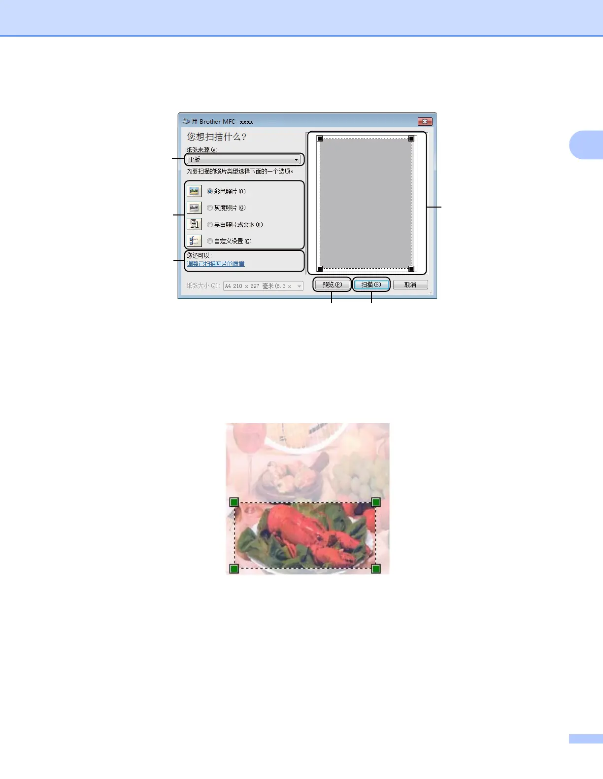 e 按住鼠标左键并拖动鼠标裁剪出您想扫描的部分。