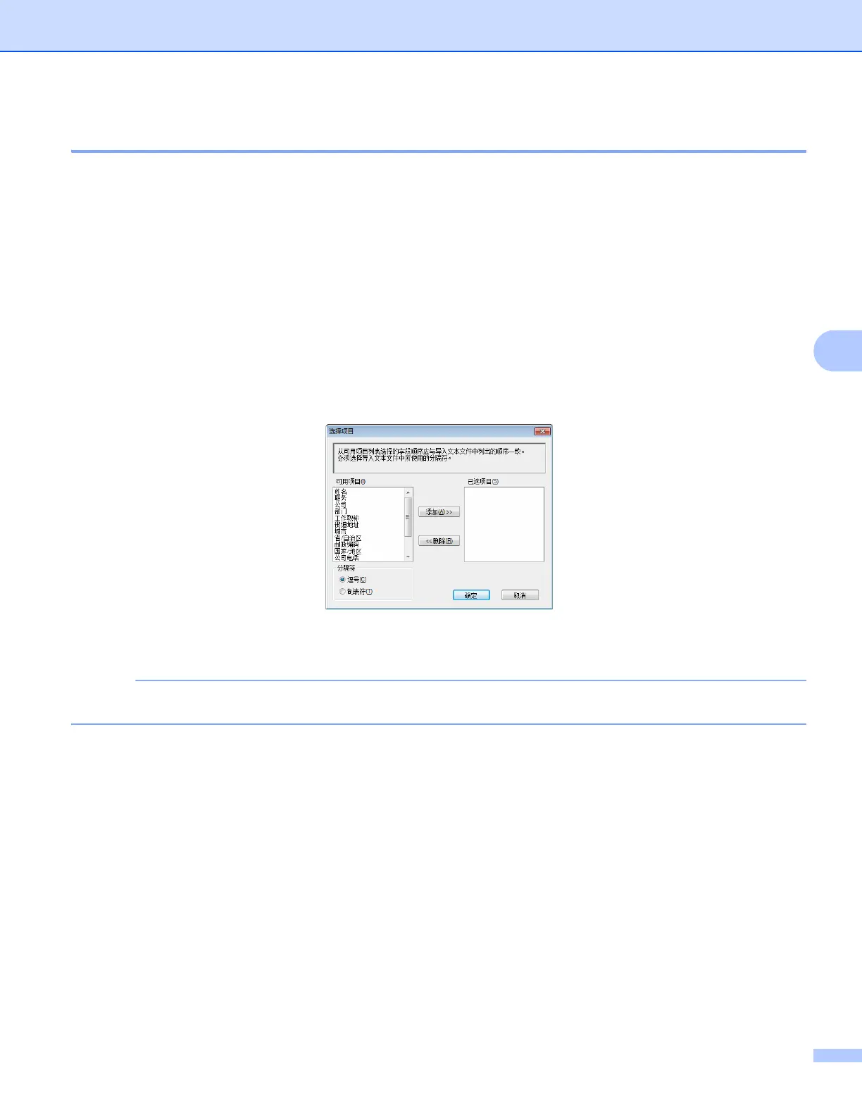 从可用项目列表中按其在导入文本文件中的排列顺序选择字段。