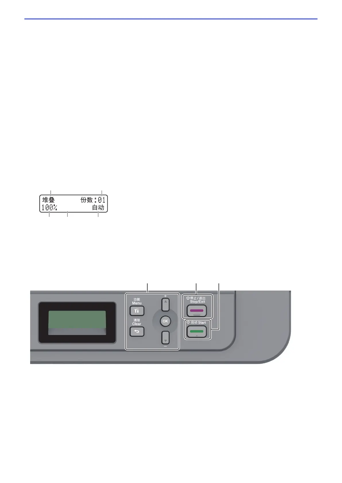 如果设备处于就绪模式或复印模式,液晶显示屏上将显示: