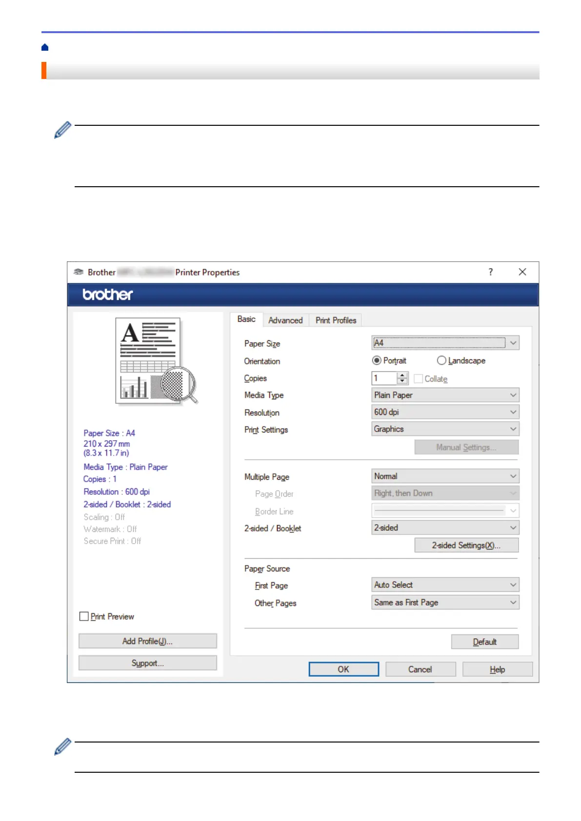 • 2-sided printing may be the default depending on your model. For 1-sided printing, turn off the 2-sided