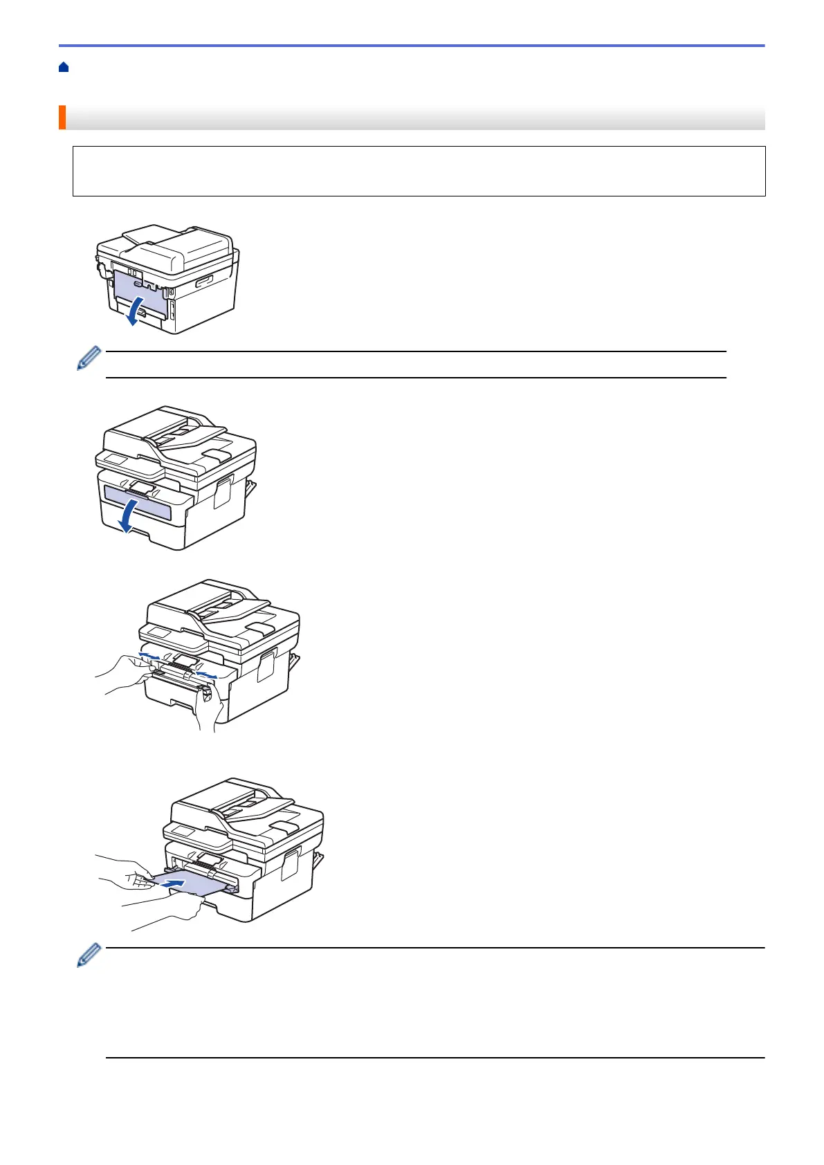 • Pull the paper out completely if you must reload the paper into the manual feed slot.