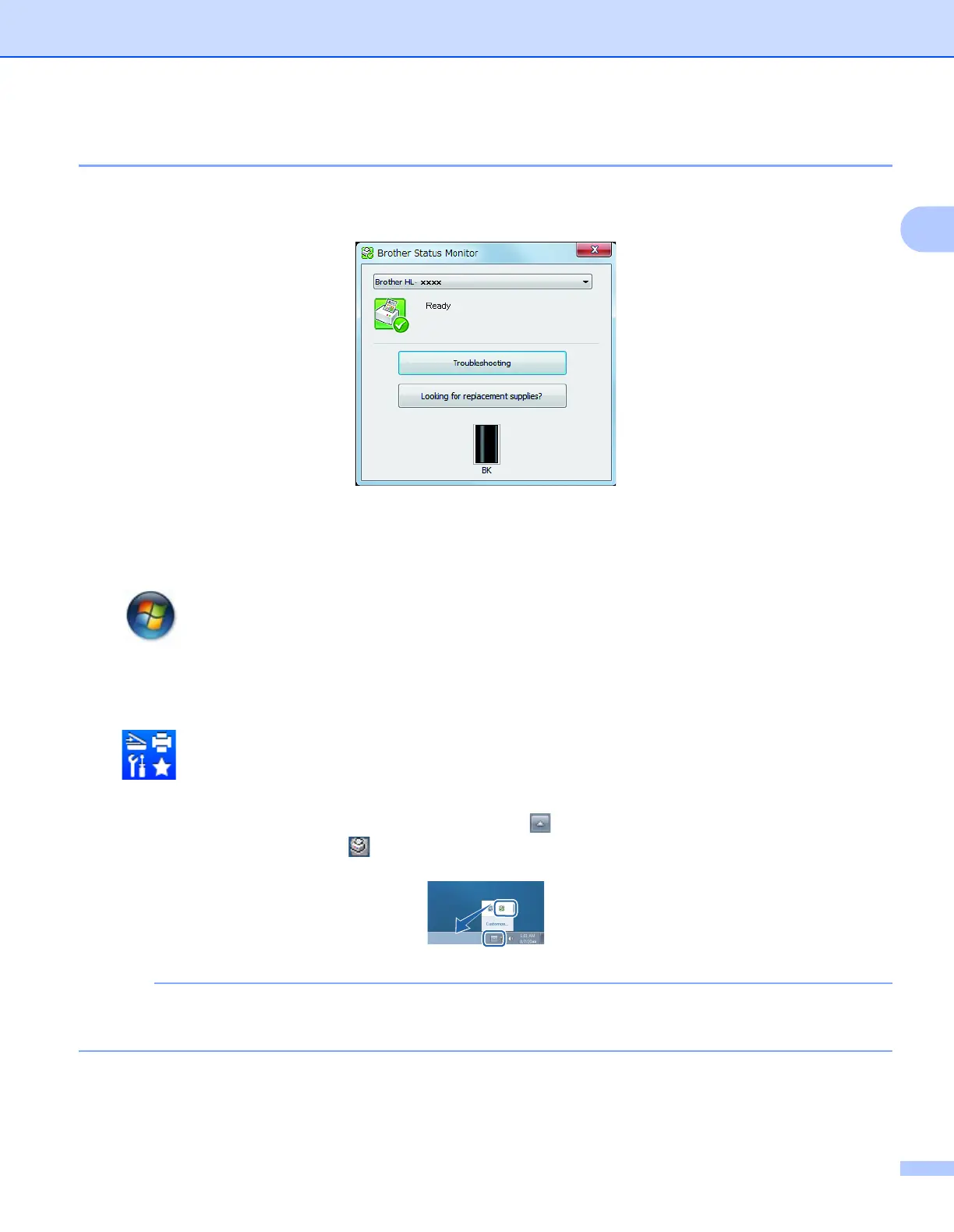 To show the Status Monitor icon on your taskbar, click the button. The Status Monitor icon will appear
