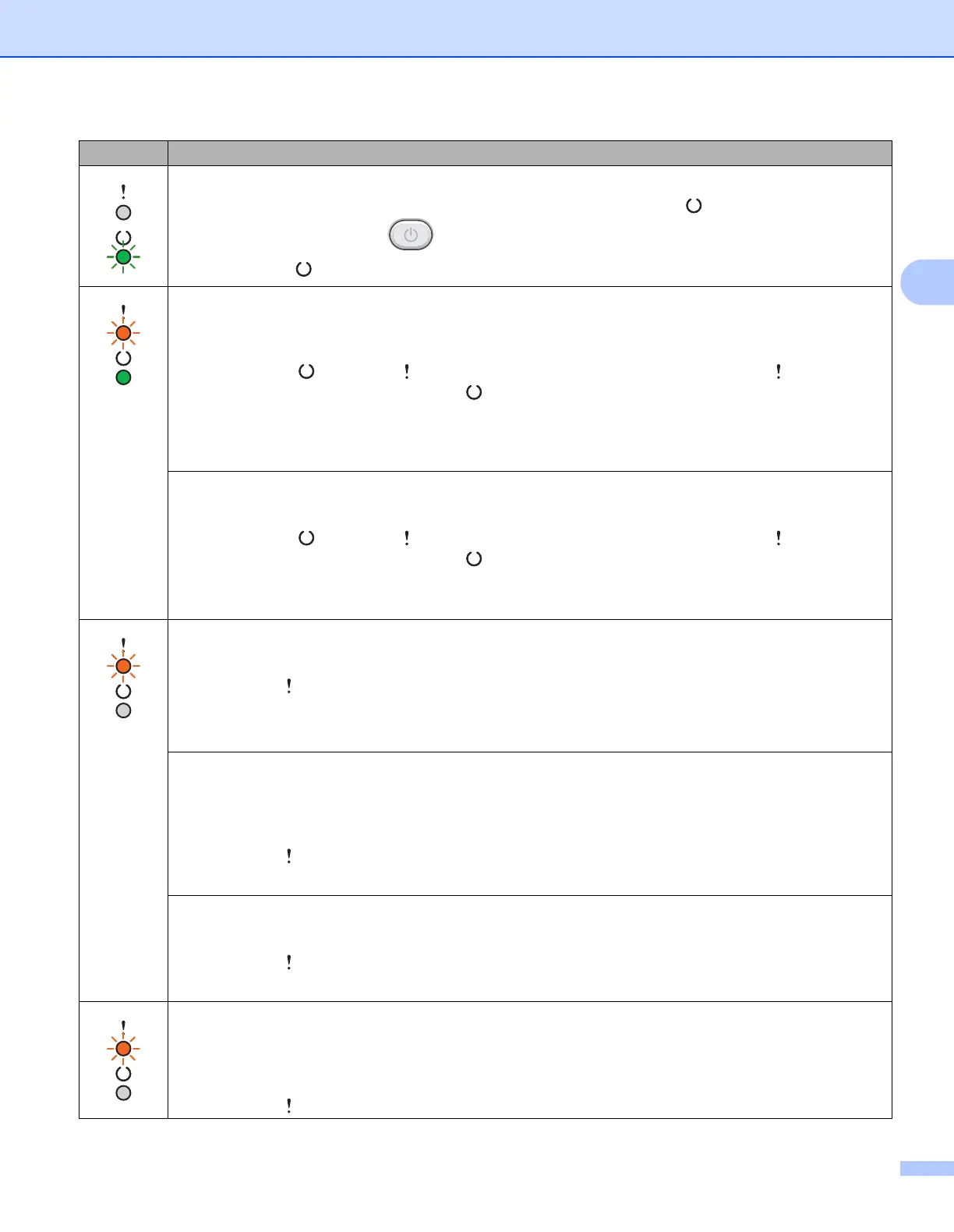 Both the Ready () and Error () LEDs will turn on together, then the Error LED () will turn off