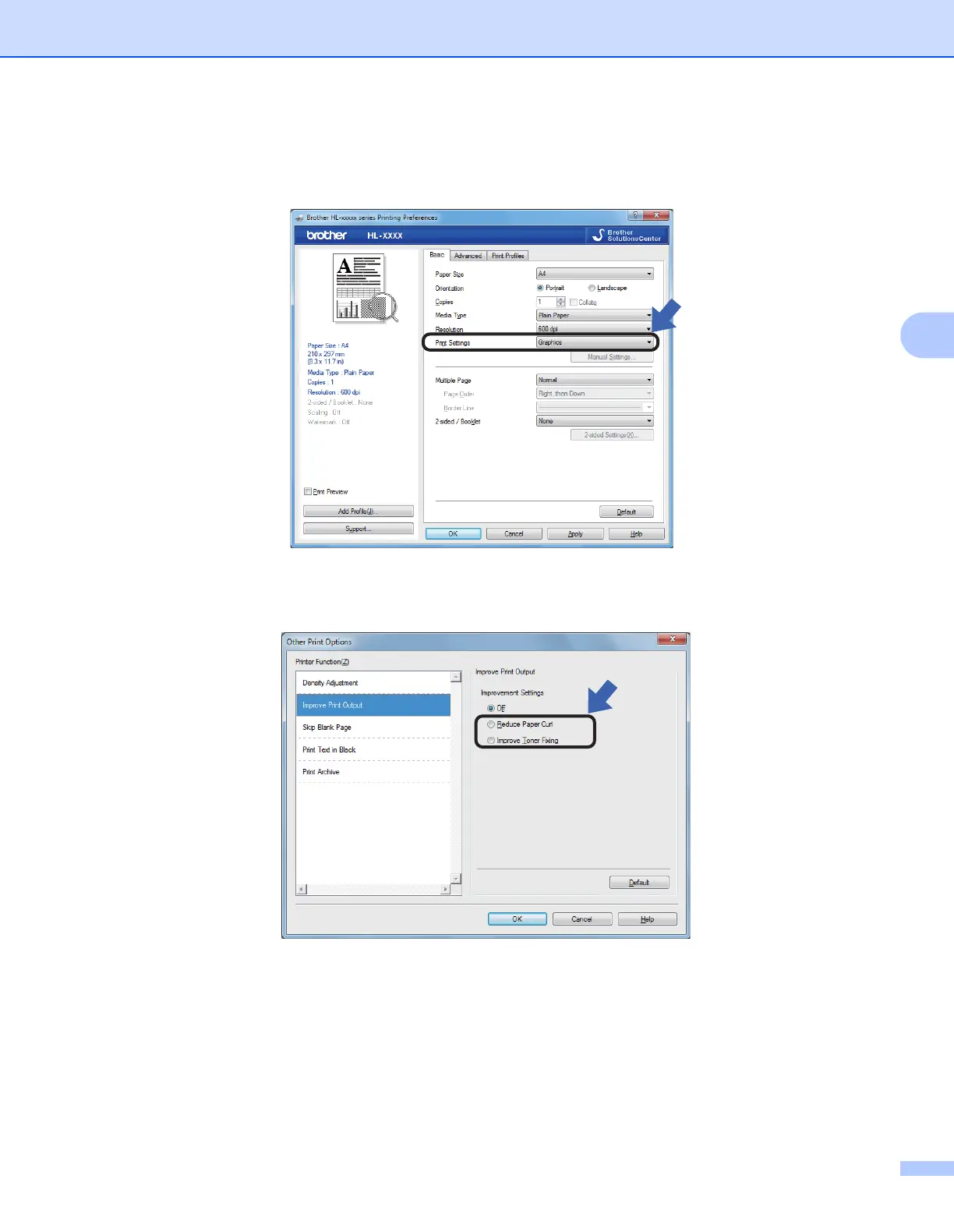 If the paper is curled or the toner is not fixed well on the paper, you can adjust these settings in