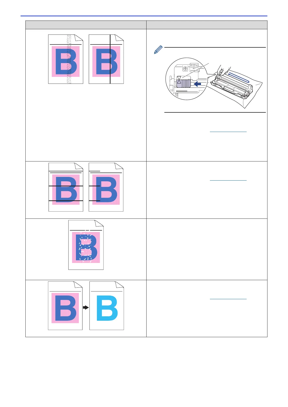 • 如果打印几页后此问题仍没有解决,则硒鼓中可能有异