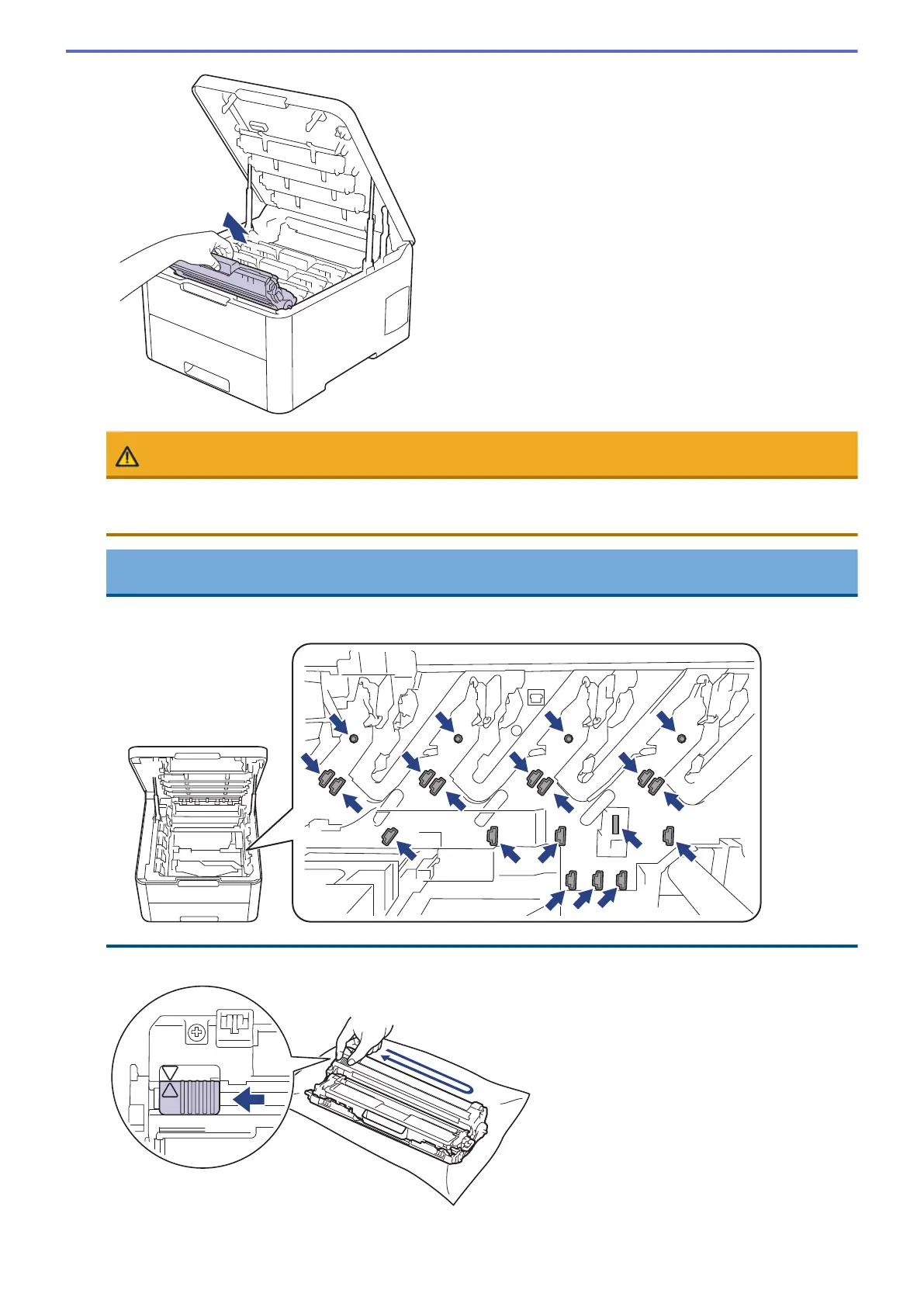 Brother 建议您将墨粉盒和硒鼓单元组件放在干净、平坦的表面上,并在下面垫上干净的纸或布,以防墨