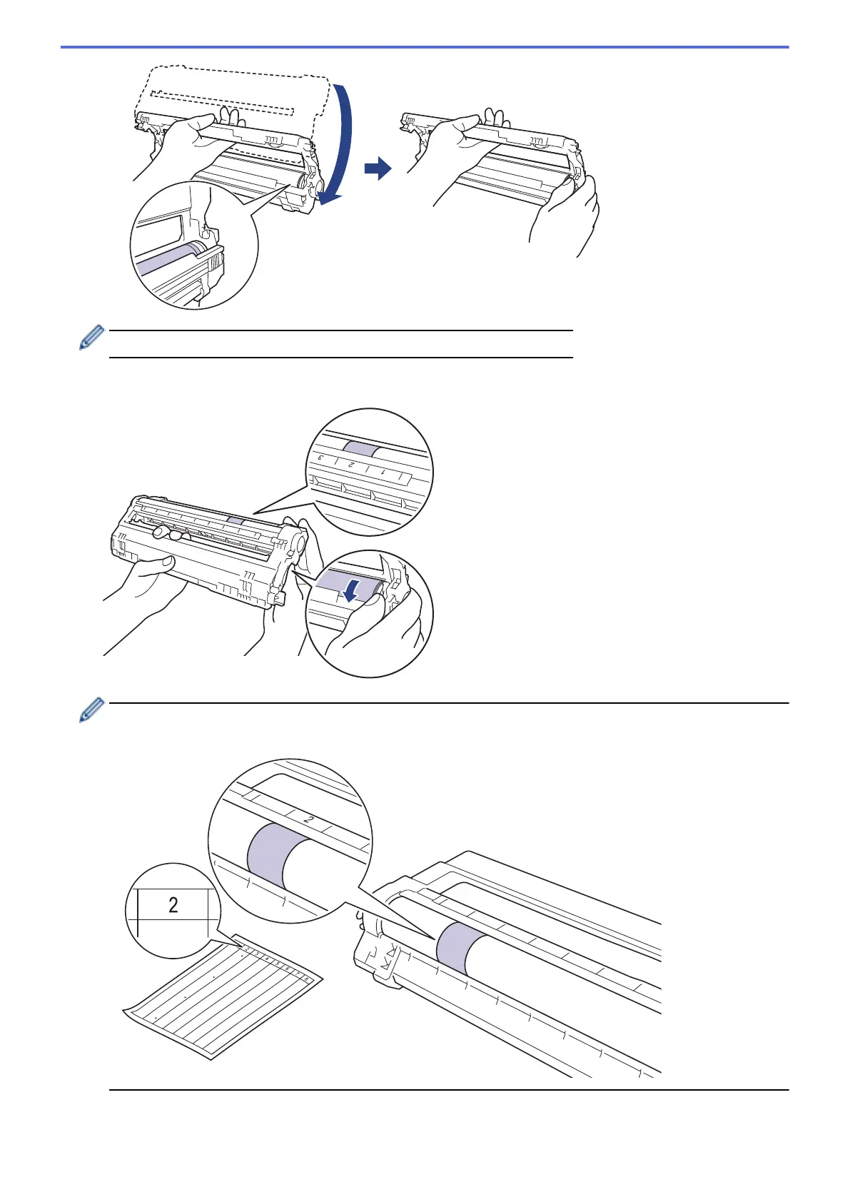 根据硒鼓辊旁边的列编号找到印记。例如:如果硒鼓点阵检查表第 2 列中出现斑点,则表示在硒鼓的 “2”