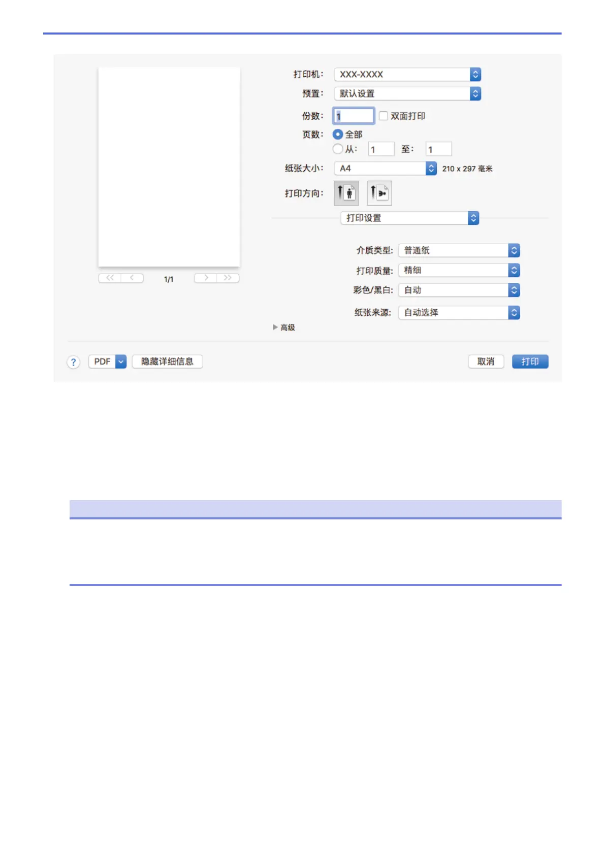 选择您想使用的介质类型。为获得最佳打印效果,设备会根据选定的介质类型自动调整打印设置。