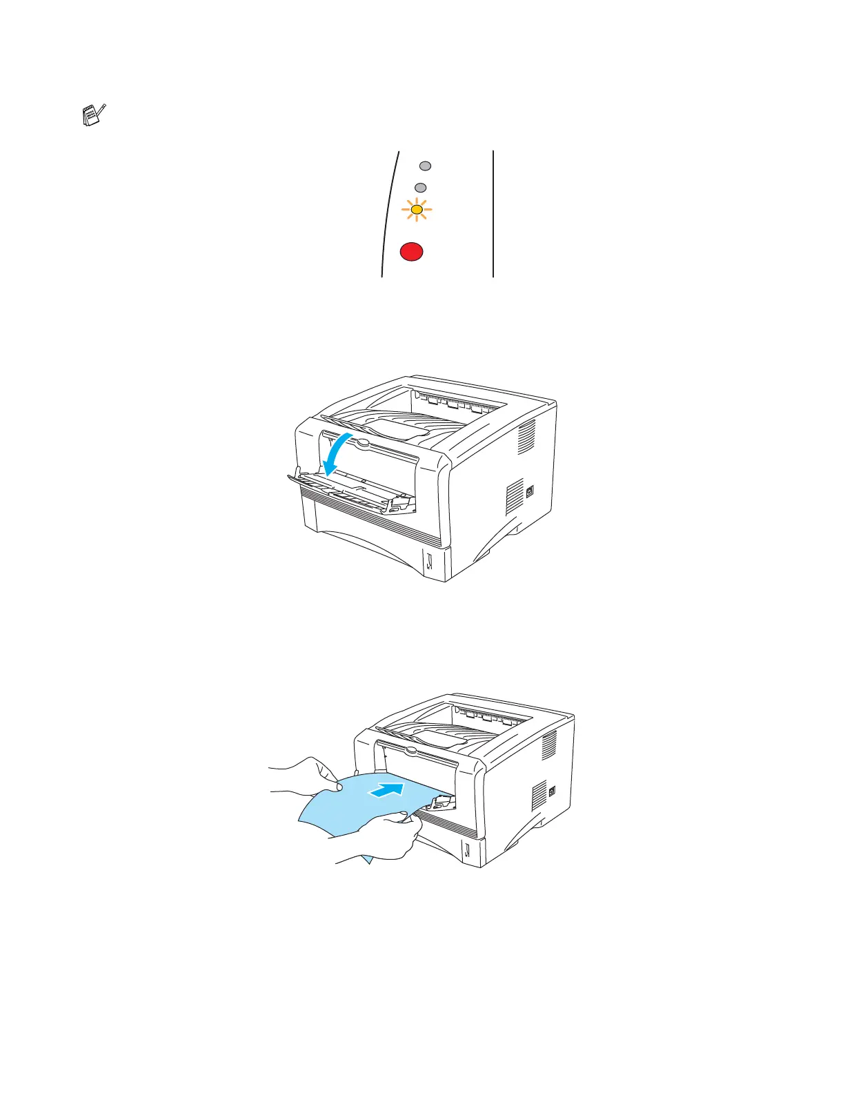 De lampjes op het bedieningspaneel geven aan dat het PAPIER OP is totdat u een vel papier in de