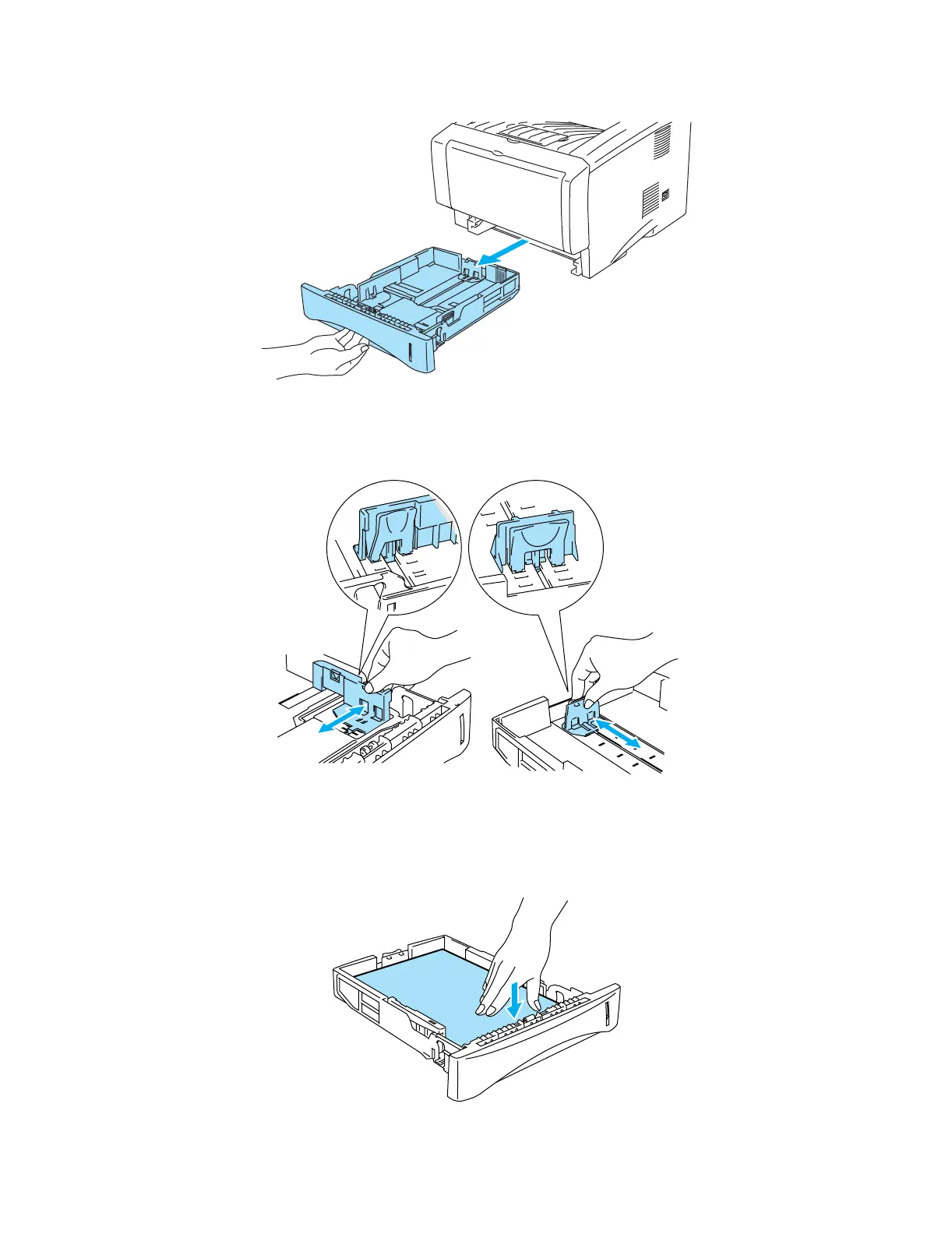 Houd de blauwe vrijgavehendels van de papiergeleider ingedrukt en stel de geleiders af op het