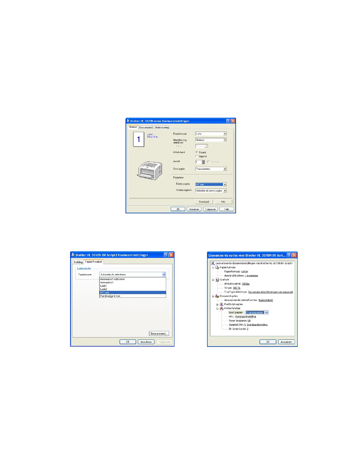 Selecteer Papierformaat, Soort papier, Papierbron en andere instellingen in de printer driver.