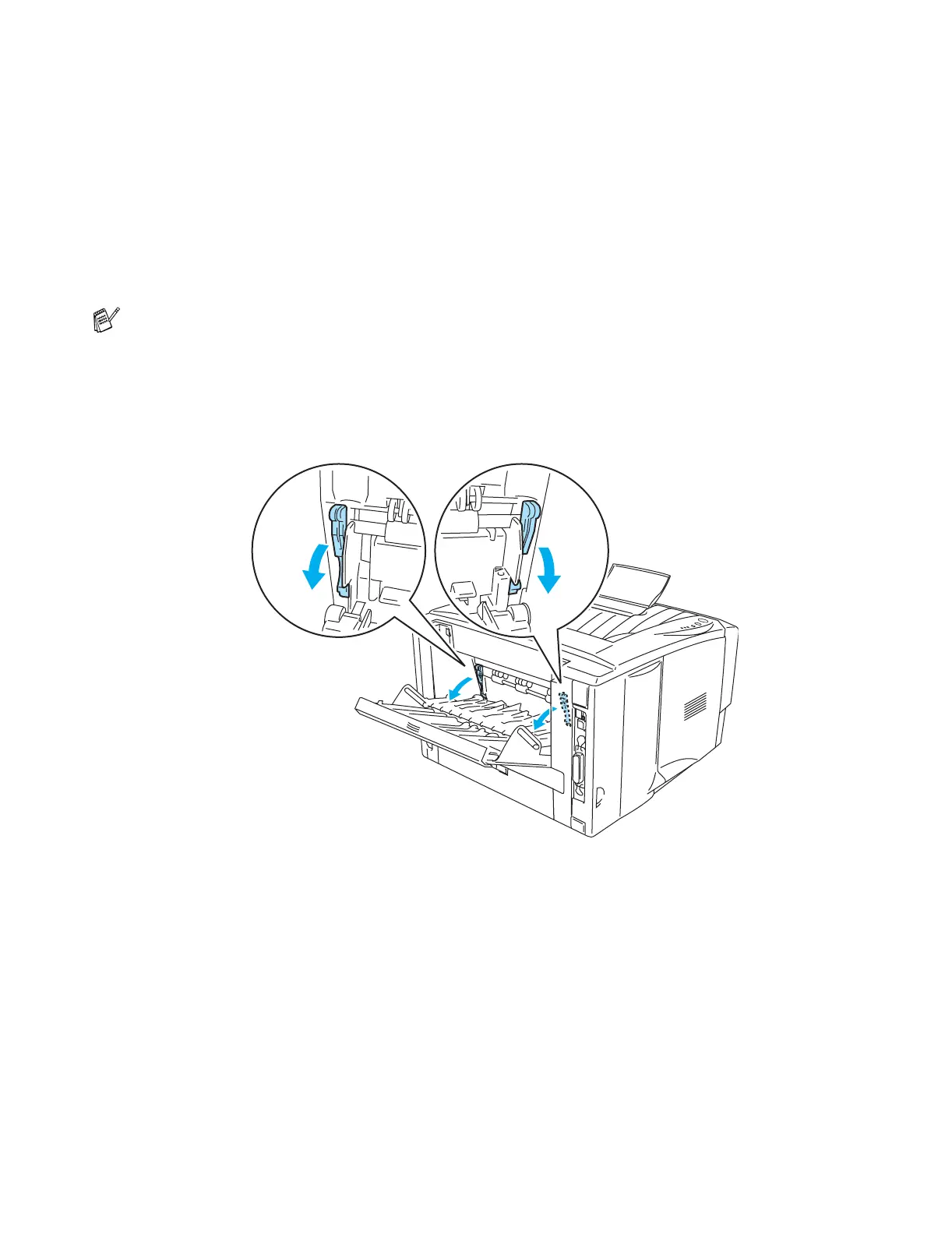 met afdrukken, moet u de uitvoerlade aan de achterkant sluiten om de twee blauwe lipjes weer in