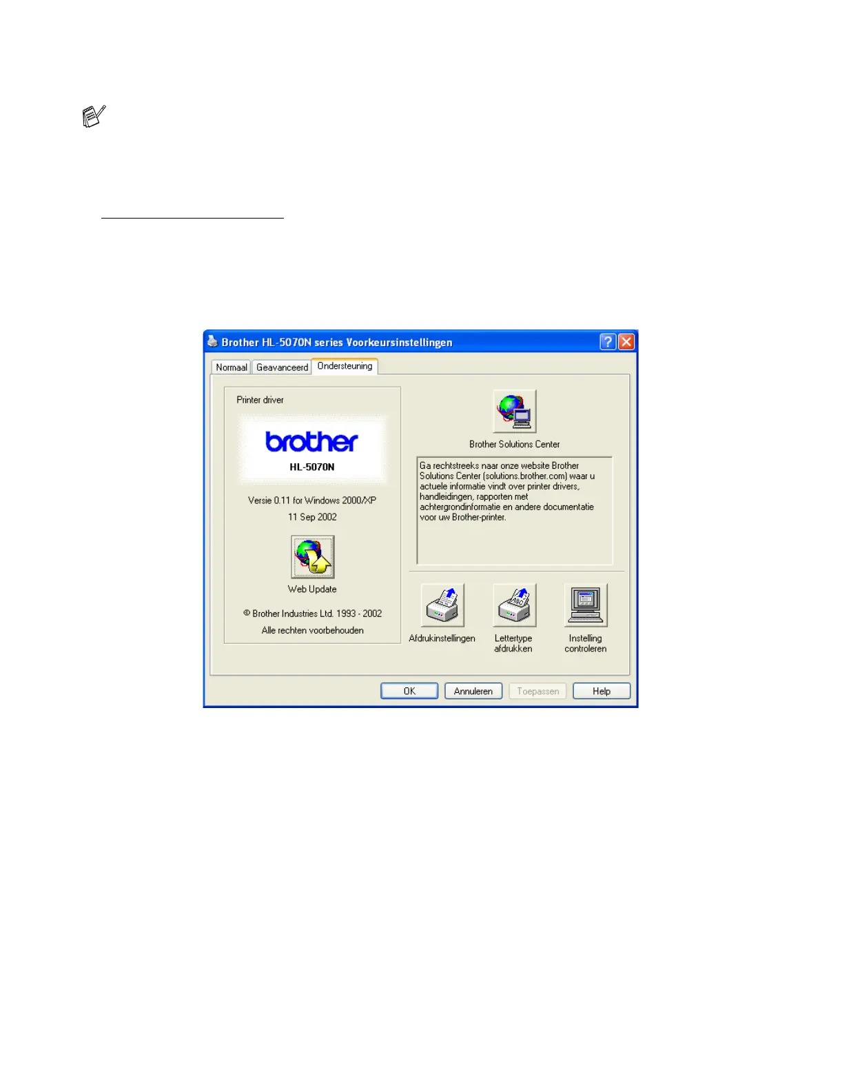 door in het tabblad Algemeen van het scherm Brother HL-5000 series Eigenschappen te klikken